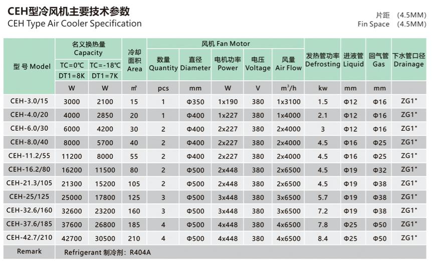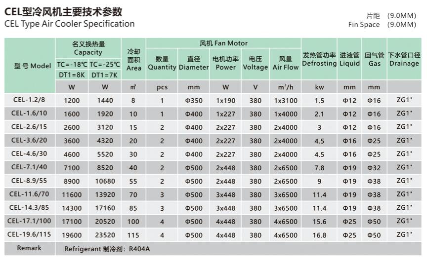 Dividing into 3 series CEH, CEM and CEL depend on the different fin space suit to different room temperature demand.